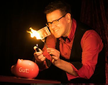 Wenn Arnd Clever auf der Bühne die Realzinsfalle erklärt, kann es schon mal heiß hergehen. Für die meisten Menschen sind Finanzthemen und Fachbegriffe sehr abstrakt und schwierig zu verstehen. Mit Hilfe der Zauberkunst macht Arnd Clever komplizierte Zusammenhänge verständlich - und sorgt gleichzeitig für einen hohen Unterhaltungswert mit Gänsehautmomenten.